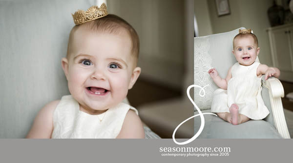 I just love this baby girl! Already full of personality at her newborn session I couldn’t wait to see her at 6 months old. Let me just say I was actually distracted from doing my job by her cuteness! So many facial expressions, I would not stop smiling while going through the images to edit. Even my kids came in to see her photos! Their Wake Forest home is gorgeous and the results are beautiful! (If you follow the link to her newborn session you will see the crown used in these portraits – we are going to keep using it to show her growth!)